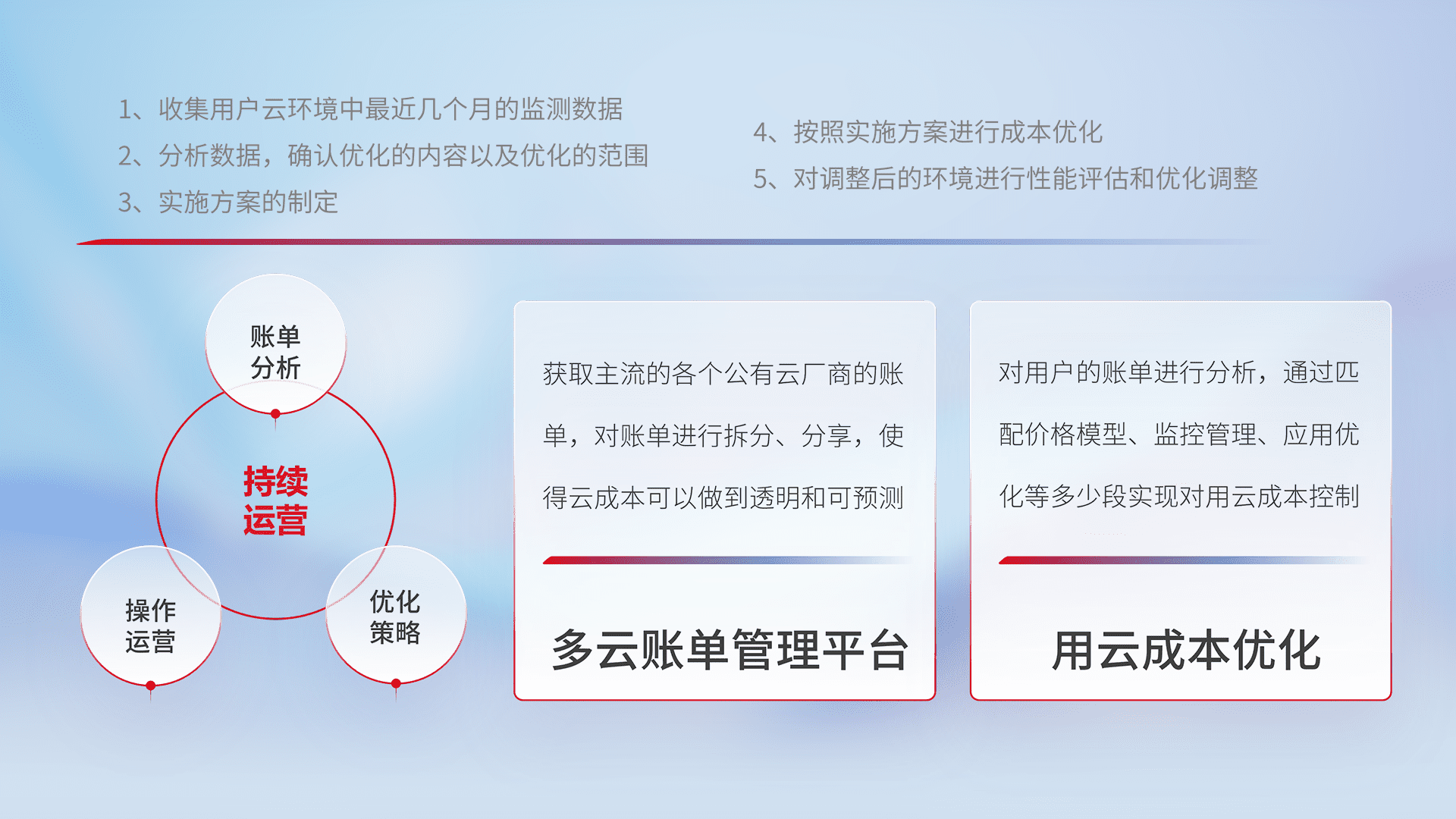 监控业务系统资源开销,,,对资源的消耗精确计量,,实现费用的透明化管理,,不断提升资源使用率,,调整资源购买方式,,,,降低资源费用成本,,,,用云成本可预测、、用云费用可优化,,,云资源配额有据可依。。